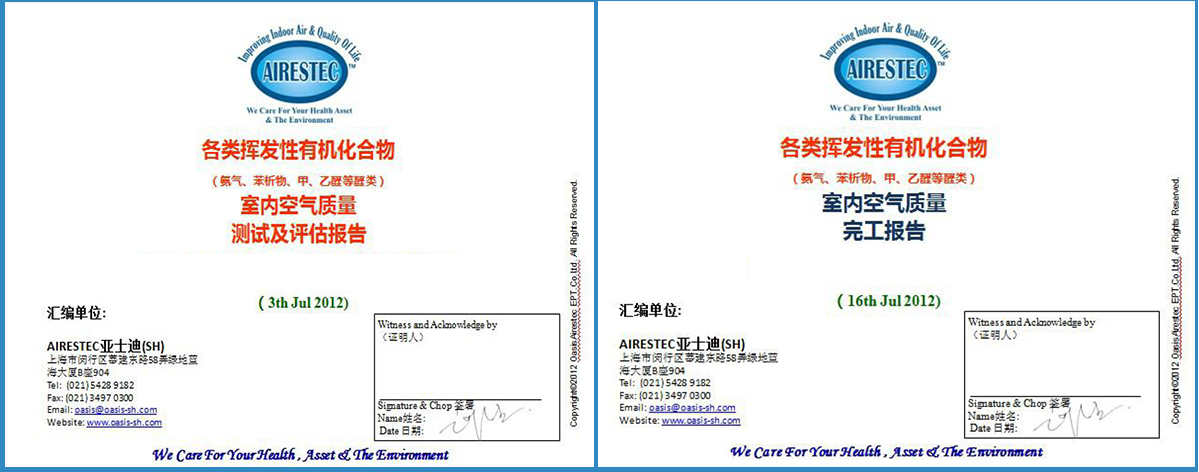 From the real understanding of the complexity of the newly installed environmental VOC, through a sound tracking report to honestly inform customers and continuous service. We need to correctly understand the characteristics of volatile VOCs in fresh environment, simple single construction and blind construction without any scientific method, no matter what the product is not enough to really protect customers. Kang needs. AIRESTEC adopts the mini3000 testing equipment used by Hong Kong Environmental Protection Agency to assist in the construction and carries out 12-month follow-up monitoring and service. Before and after the construction issued by the relevant reports and monitoring of the tracking report.